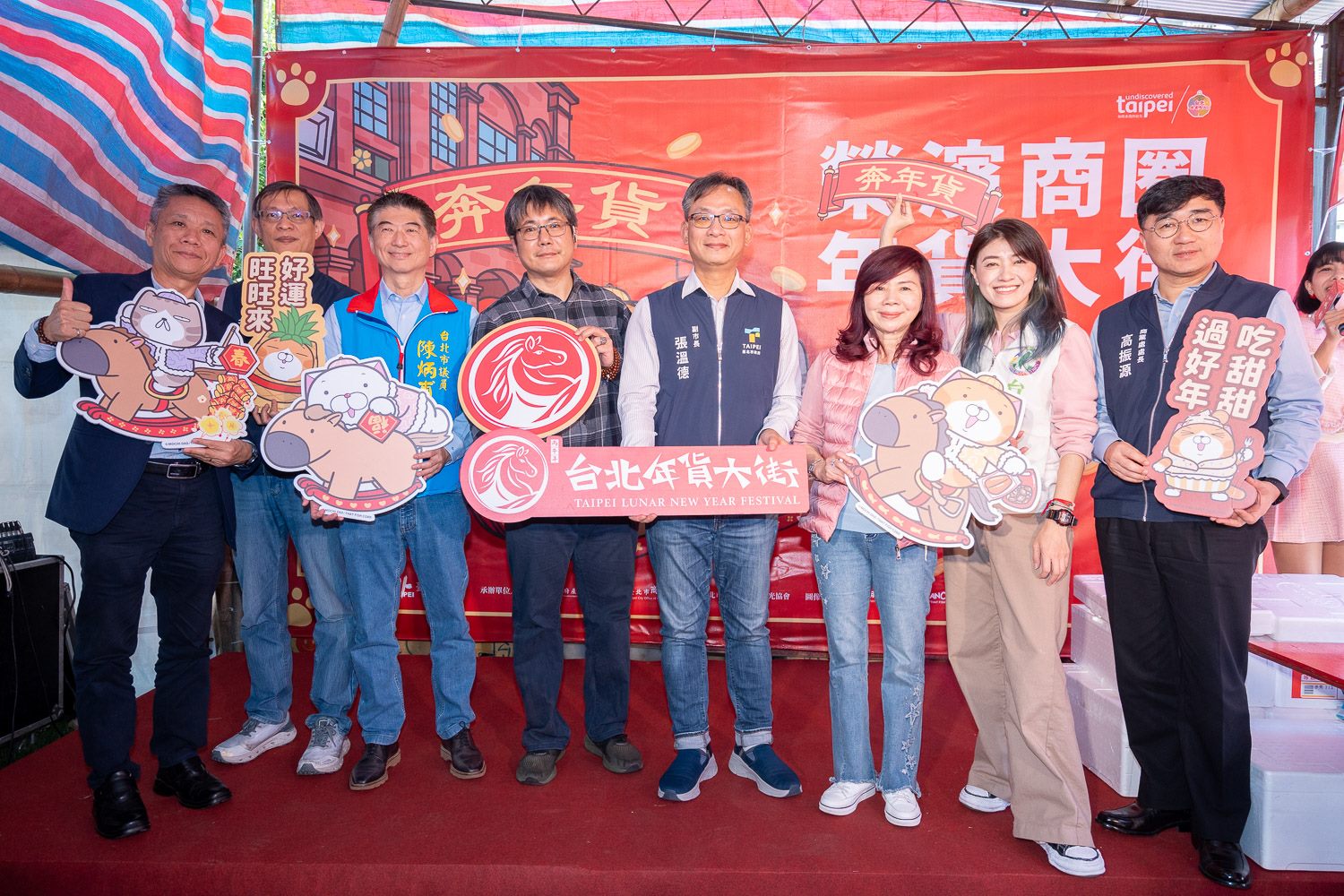 榮濱年貨大街於2月10日起至2月16日止熱鬧展開,今日張溫德副市長也親至現場向攤商與民眾拜年發放「馬上有錢 喵」,本次特別邀請型男大主廚–吳秉承與副市長共同結合濱江市場新鮮漁貨,推出限定特色料理「馬到成功–青“雲”直上」,藉此向民眾傳達來到榮濱商店街,可以免去四處採買的麻煩之餘,也可以自己在家DIY做年菜,讓大家輕鬆享受烹製年節佳餚的樂趣。 張溫德副市長表示,位於濱江市場的榮濱商店街,販賣各式蔬果、山產及南北乾貨美食等應有盡有,是民眾置辦年節食材的首選之地。邀請大家一同來到「台北廚房」,一次購足年節餐桌所需食材,輕鬆打造便捷又美味的年節佳餚饗宴。 臺北市榮濱商店街觀光協會陳威遠理事長表示,榮濱商圈不論是生鮮蔬果、農漁特產或是熟食乾貨一應俱全,年貨大街期間,讓民眾平時忙於工作之餘,在年節期間也能抓緊腳步採買年節食材。來到這裡,除了有傳統市場的親切,還能以親民價格購得星級食材,榮濱年貨大街絕對不會讓各位失望! 接下來15日林奕華副市長將至萬華各大夜市發放「馬上有錢 喵」,邀請民眾一起「駿馬奔騰迎新春,吉星高照報豐年」!想知道更多年貨大街的活動資訊嗎?歡迎至「台北市商業處-我是商Ya人」臉書粉絲團(https://www.facebook.com/tcooc/)查詢。